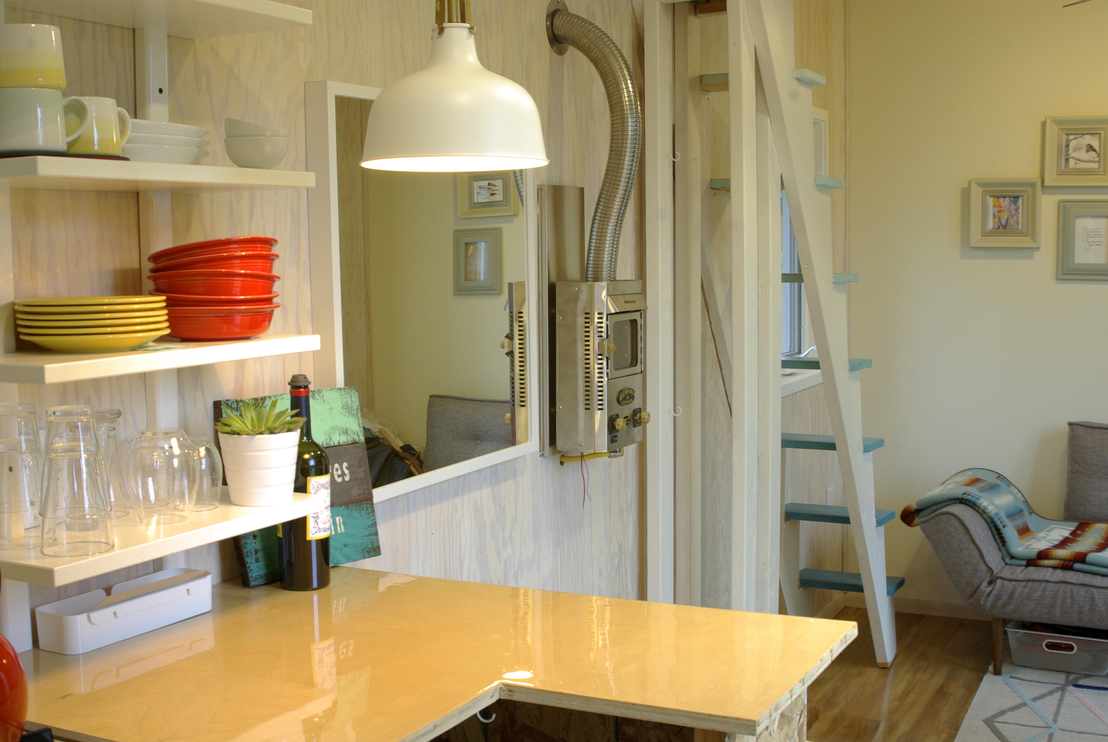 Our plan has been to live in the tiny house for at least a year before purchasing a house, then use the tiny house in our future backyard to rent on Airbnb. Adam will be done with Academy in July and we have decided that a couple months of good old-fashioned summer fun are much needed. Last summer Adam built this house while working full time and with our current plans of buying a house to re-model, it would be nice for him to have some time between Academy and home renovations. Plus, we love it here and can’t think of a better place to spend the summer. We live next to a 90 acre park so it feels like we are surrounded by nature, on the other side of us we have a lively neighborhood with restaurants and bars that we love walking to on summer evenings.